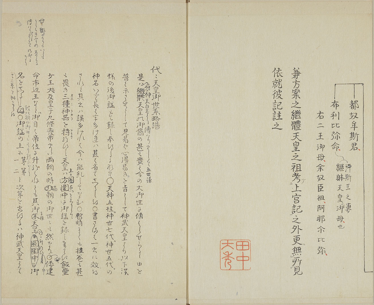 学術情報センター 電子画像集 奈良地域関連 阪本龍門文庫画像集  継体天皇御世系解 56/64  次頁 次頁 小画像表示 前頁 前頁