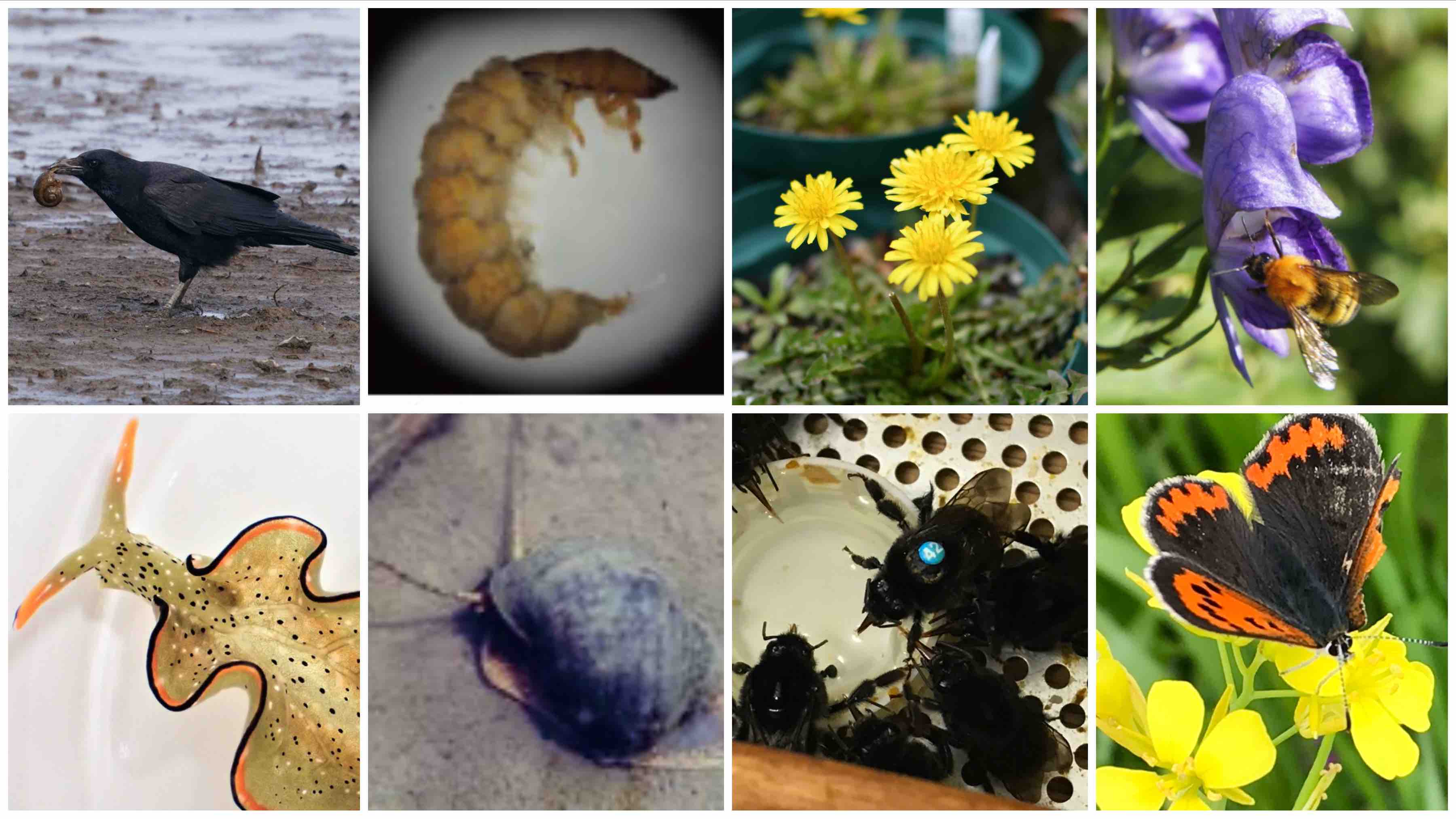 生態学分野では,個体から生態系までさまざまスケールで生物を捉え,生活史・進化・生物間相互作用や群集構造に関する研究を行っています。対象としている生物は,海域・陸水域の無脊椎動物や脊椎動物,陸域の昆虫や植物と多岐にわたっています。野外における調査研究,室内実験,得られた情報の解析,また理論モデルの構築を行い,基礎研究から保全などの応用研究まで,生態学の諸問題に取り組んでいます。