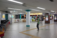進行方向右手にきたまち案内所があります(旧交番の建物) |