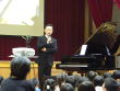 芸術鑑賞会を行いました。左手のピアニストとして活躍する智内威雄さんによるミニコンサートです。左手での演奏についてもお話をしていただきました。