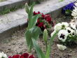 校庭の桜が咲き始めました。チューリップのつぼみも膨らんできています。
