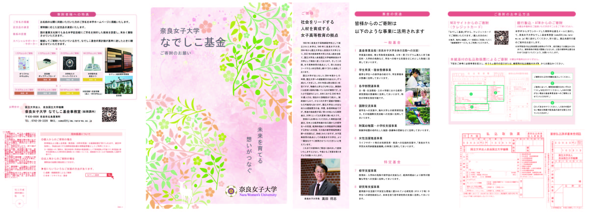 奈良女子大学なでしこ基金は、創立90周年及び100周年記念を機に広く学内外の皆さま方からご寄附いただきました寄附金を原資として創設いたしました、奈良女子大学基金及び奈良女子大学国際交流基金を統合し、平成26年に新たに設立いたしました。