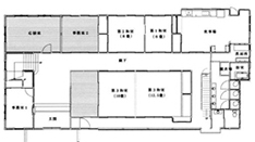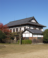 建物は桁(けた)行24.75m、梁間12.07m、木造2階建て、入母屋造(いりもやづくり)です。東西の妻(つま)側には豕扠首(いのこさす)という形式の妻飾りがあります。壁は柱が外面に現れる和風建築の伝統的構法である真壁(しんかべ)造りであり、漆喰塗壁です。
