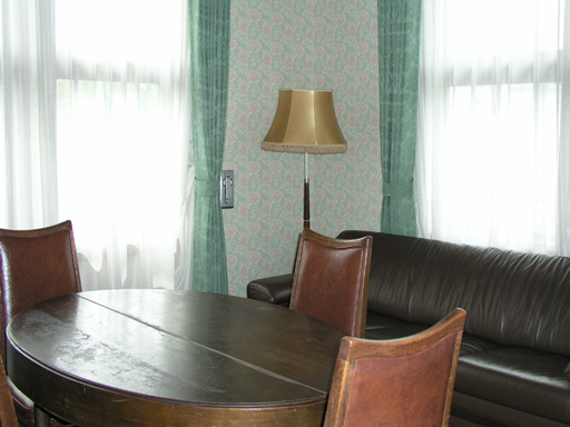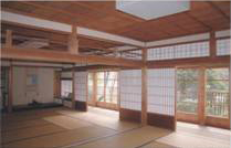 中廊下の上部の壁は一部創建当時のものを残しています。12畳半・10畳敷の二間続きの第二和室は格式ある書院造りとなっています。天井は棹縁(さおぶち)天井で、押さえの棹に猿頬(さるぼお)と呼ばれる面取りをしているのが特徴です。また障子の組子は縦横を交互に交差して組む両組手(りょうくで)と呼ばれるもので、匠の技の丁寧さがみられます。欄間は竹の節という形式で、竹の節の形状の切込みを入れた親柱を立て、横材を二本渡して間に、たすきをいれたデザインです。さらに1階には重厚な雰囲気の応接室があり、窓はロープを用いた当時のままの上げ下げ窓です。玄関ホールの置時計は設立以来、故障もなく15分毎にウエストミンスター寺院と同じ荘厳な音を館内に響かせています。