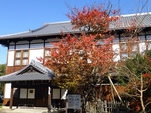 佐保会館は、明治41(1908)年の旧奈良県立図書館、明治42(1909)年の奈良ホテルなどと類似した伝統的な意匠の建築で、階段手すりの擬宝珠(ぎぼし)、広間の格天井(ごうてんじょう)、窓枠のデザインなどに特徴があります。