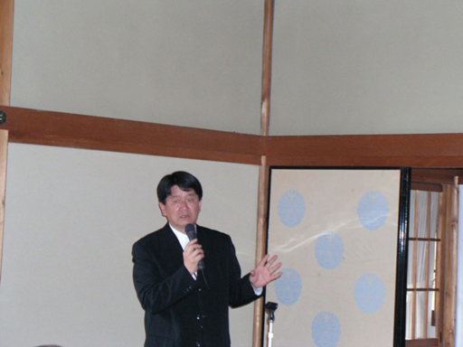 鳳凰堂の右手の細道を少し上ったところが浄土院。ここで、宮城俊作先生のお話を伺った。先生はこの平等院、最勝院のお生まれで、豊かな自然環境、文化環境の中で成長された。大学や大学院で造園学、農業研究学、デザイン学など幅広く学ばれ、現在、ランドスケープデザイン、都市デザインを専門とされ、日本では数少ないランドスケープ・アーキテクトとしてご活躍で、2001年からは奈良女子大学生活環境学部の教授でもある。