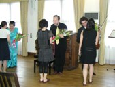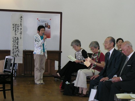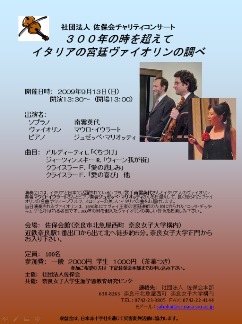 「300年の時を超えて、イタリア宮廷ヴァイオリンの調べ」と題した佐保会チャリティコンサートが、野口学長、久米前学長ご夫妻を初め、約80名の皆様のご出席のもと9月13日(日)に行われました。選曲はクライスラーの「愛の喜び」やシュトラウスJ.「ウィーン気質」などなじみ深く、320歳のヴァイオリンと110歳の佐保会館のピアノの共演は、古きヨーロッパを偲ばせうっとりと聴き入りました。2曲のアンコールが終わっても感動の拍手はなりやまず、結局、佐保会の皆様にお礼にと代表して理事長が舞台に呼ばれ、エルガーの「愛の挨拶」がプレゼントされました。終了後、すばらしい演奏であったと多くの皆様から感想をお寄せいただきました。今回は、佐保会員以外の皆様の出席が多く、インターネットで知ったと遠方からお越し下さったご夫妻もおられました。皆様、ありがとうございました。