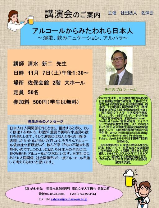 −講演会 「アルコールからみたわれら日本人〜演歌、飲みニュケーション、アルハラ〜」−