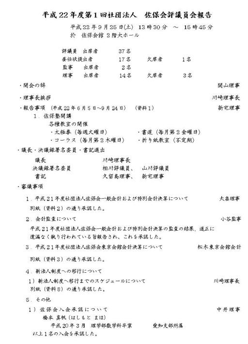 平成22年度(社)佐保会第1回評議員会を開催しました。