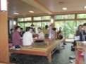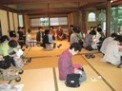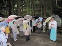 午後からは希望により5コースに分かれて周辺散策。時折の小雨の中、水を含んで叡山苔が蘇り、小萩のこぼれる石積みの里のそぞろ歩きもまた一入でした。最後は旧竹林院で一服のお茶を頂き、国指定名勝の庭を眺めながら歓談した後帰路に着きました。