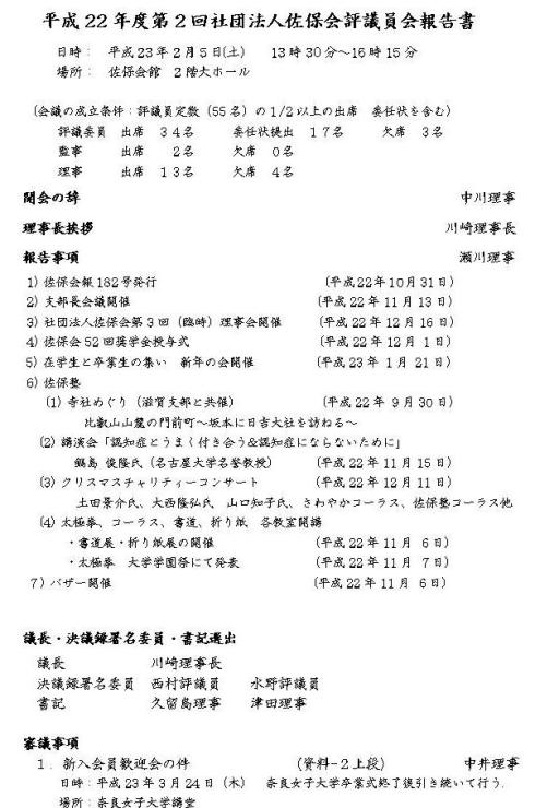 平成22年度(社)佐保会第2回評議員会を開催しました。