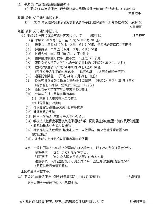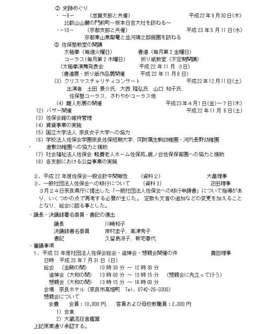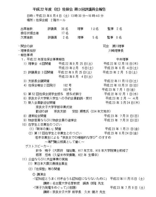 平成22年度(社)佐保会第3回評議員会