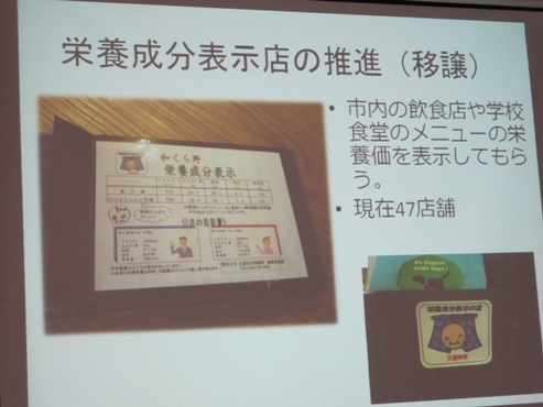 久留米市栄養職の栃原悠希さん 久留米市保健所健康増進課勤務(H22年生活環境学部卒)は当初より出身地での専門を生かした就職に目標を定め、在学中に管理栄養士資格を取得。現在は市内の学校や飲食店の栄養成分表示の推進・指導や食育イベントでの食生活改善の普及啓発に努め、食育プランの関係部門の団体との連携や人的繋がりの中で、ご自身の専門を積極的に活かす公務員として充実した日々を過ごされているご様子も眩しく、一つの理想的な働く姿、お手本を示されました。