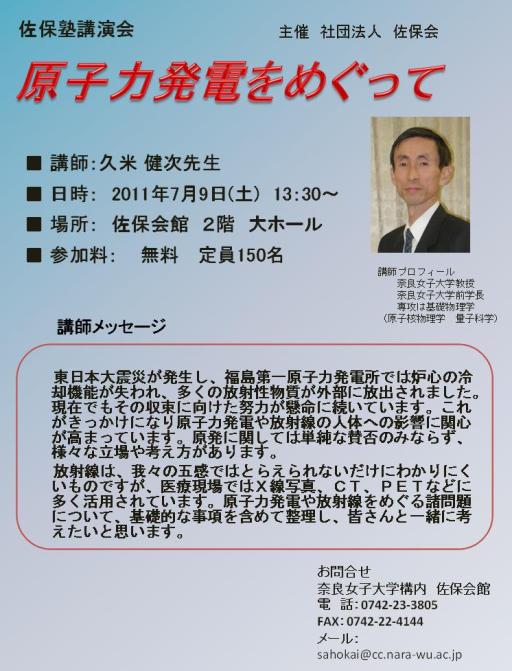 佐保塾 講演会 「原子力発電をめぐって」を開催しました。