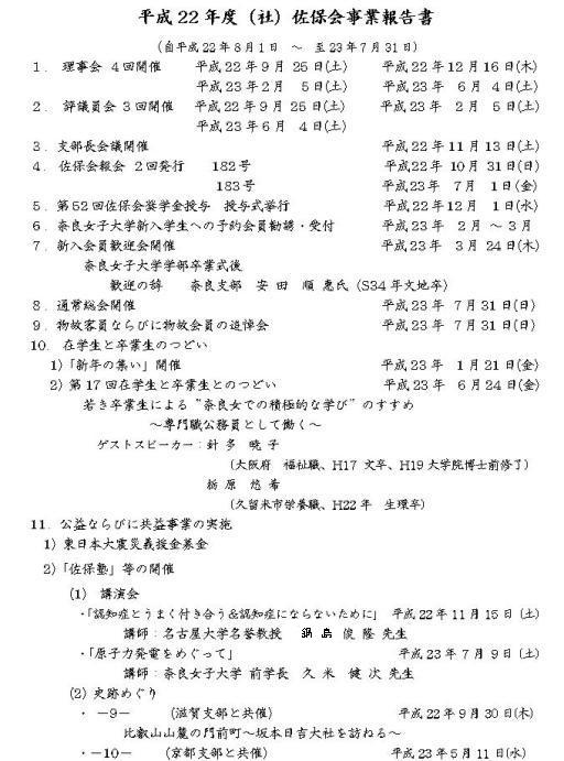 ・平成22年度(社)佐保会総会報告書