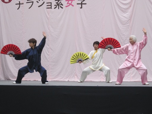 続いて講師の森田先生の仲間M2クラブ3姉妹による太極扇、森田先生と西野さんによる32式太極剣が披露されました。