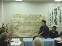 近江晴子さん(S38年 史学)にお話を伺いました。貴重な江戸時代の大阪の地図(文化3年刊 )を掲げて、