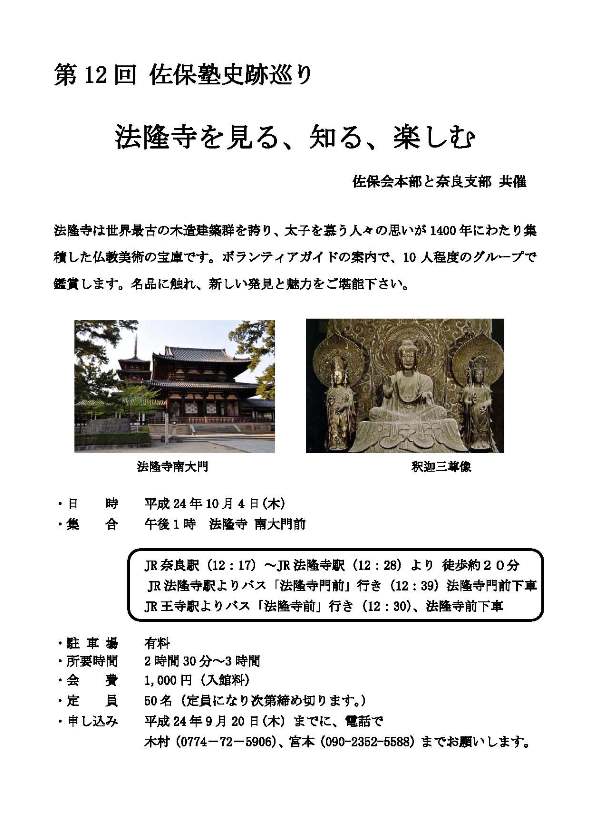 佐保塾寺社めぐり−13−「法隆寺を見る、知る、楽しむ」(奈良支部共催)