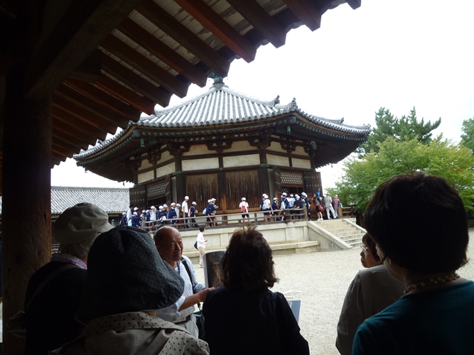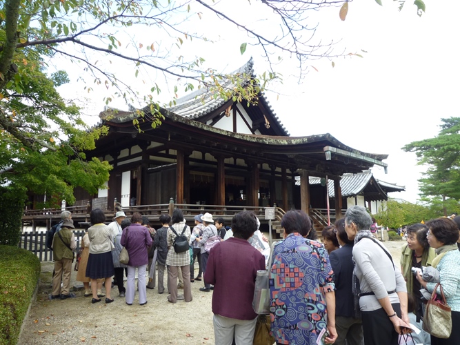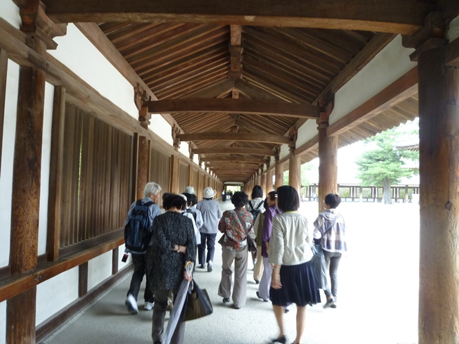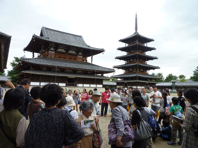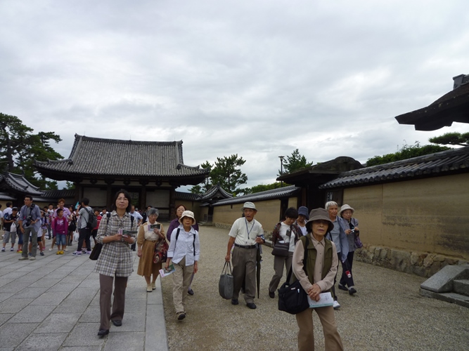 10月4日、秋到来を告げる小雨の後の薄い日差しの中で法隆寺見学が行われま