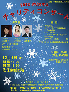 平成24年12月1日、開催され、100名近いお客様に、佐保会館の2階ホールは華やかな雰囲気に包まれました。