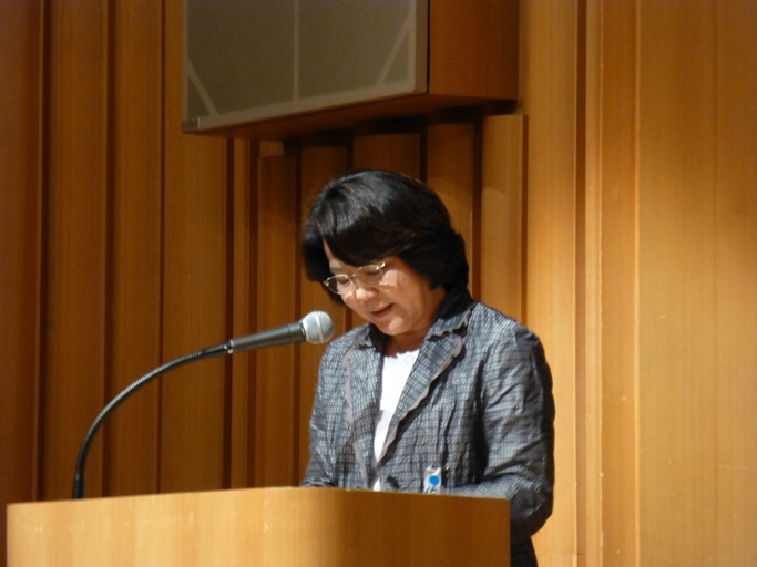 国谷氏の講演では、キャスターという言葉もなかった時代から、その任務にあたり、キャスターとはいかにあるべきかを模索しながら現在まで来られたことを話されました。女性を取り巻く環境に社会がどのように対応しているか、その状況の中で女性が何を発信していけば自分や社会が変わるのかを考えてほしい。最近もっとも感動したのは、現在イギリスでリハビリ中の16歳の少女、パキスタン人マララ・ユスフザイさんの言葉であると結ばれました。