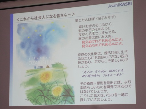 どのように向き合い、それをどのように 克服し歩みを進めてこられたかについて述べて、後輩に暖かいエール を送って下さいました。