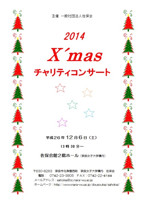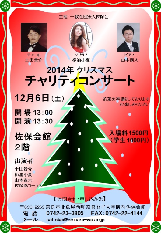 恒例のクリスマス チャリティコンサートを佐保会館2階大ホールで開催しました。