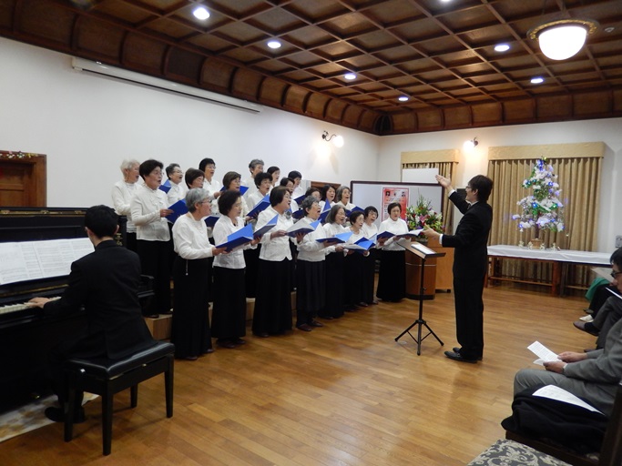 土田景介先生(関西二期会会員)の歌唱指導により、会場いっぱいにクリスマスソングが響き渡り