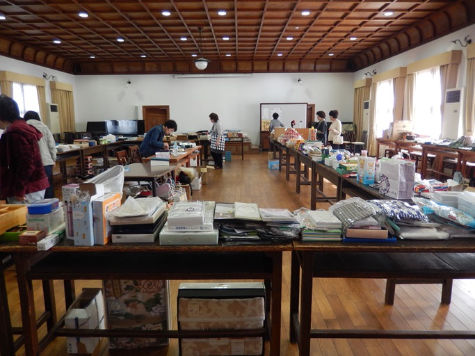 お寄せいただいた多くの品々が佐保会館2階大ホールいっぱいに並び、1階和室では、佐保塾書道講師の河口登美子先生はじめ受講生の力作を展示しました。多くのお客様が、開店の午前10時前から列をなして待たれ、バザー会場と展示会場に一日中途切れることなく来られました。食器、雑貨、置物、手作り品、布地、シーツ、毛布、タオル、ハンカチ、バッグ、靴、玩具、装飾小物等々を破格の安値で買っていかれました。午後からはさらに値を下げ、殆どをお買い上げいただきました。ご協力いただいた収益は、佐保会の活動に使わせていただきます。両会場とも、お子様連れの若いご家族や男性も多く、この催しを市民の方々が楽しみにしてくださっているのを実感しました。ありがとうございました。