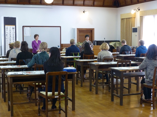 スウェーデン王立藝術大学の学生12名が奈良女子大学を訪れました。佐保会館で佐保塾書道教室