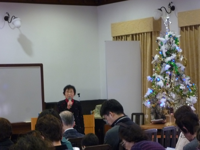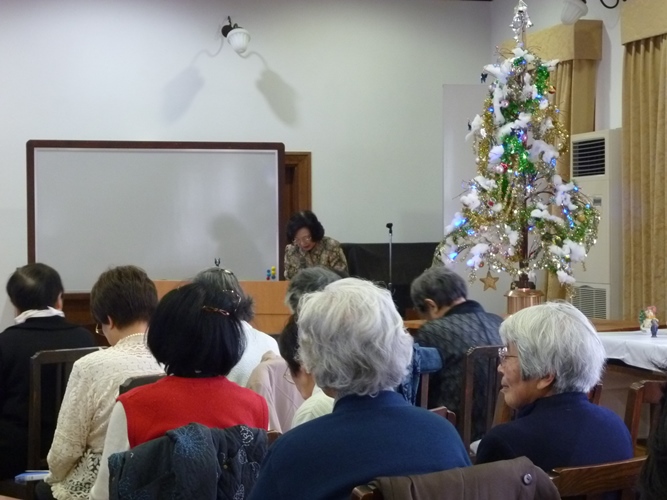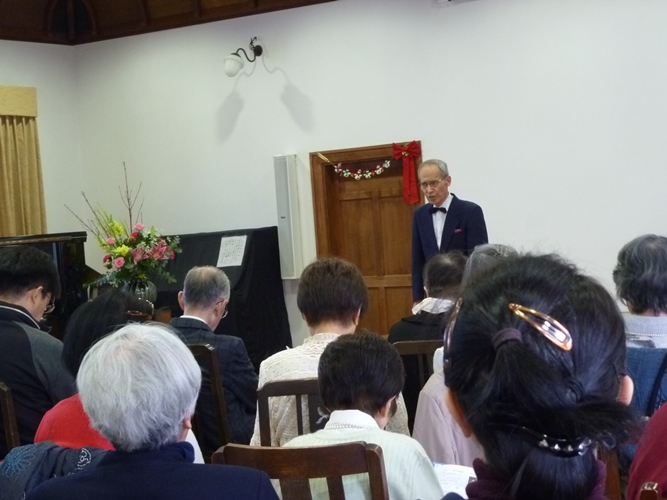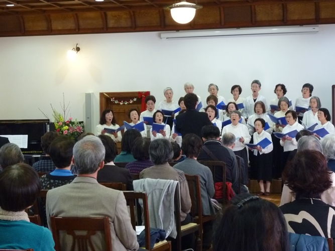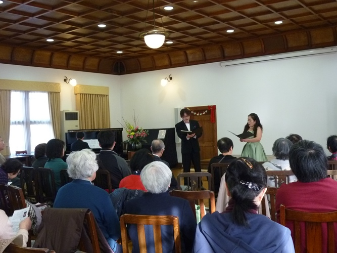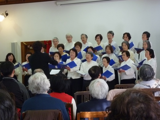 お茶とお菓子の休憩をはさんで後半はクリスマスメドレーのデュエットと佐保塾コーラスの皆様の優しい