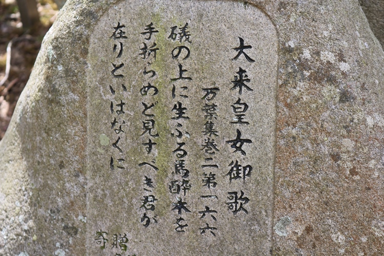 夏見廃寺の松林の中には、二つの歌碑が寄り添って置かれている。悲劇の皇女、大来皇女(おおくの
