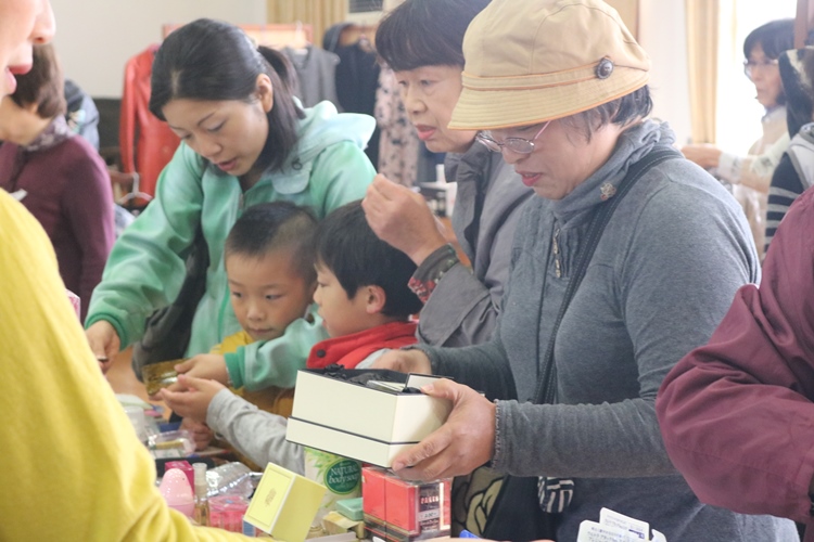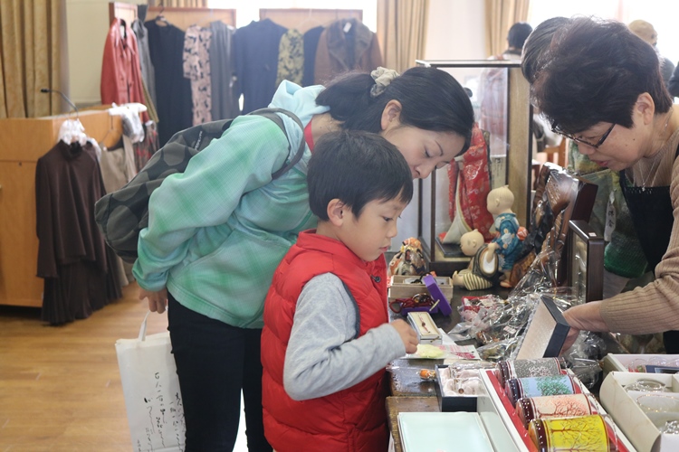 開店の午前10時前から待っている方達もおられ、バザー会場と展示会場には一日中途切れることなくお