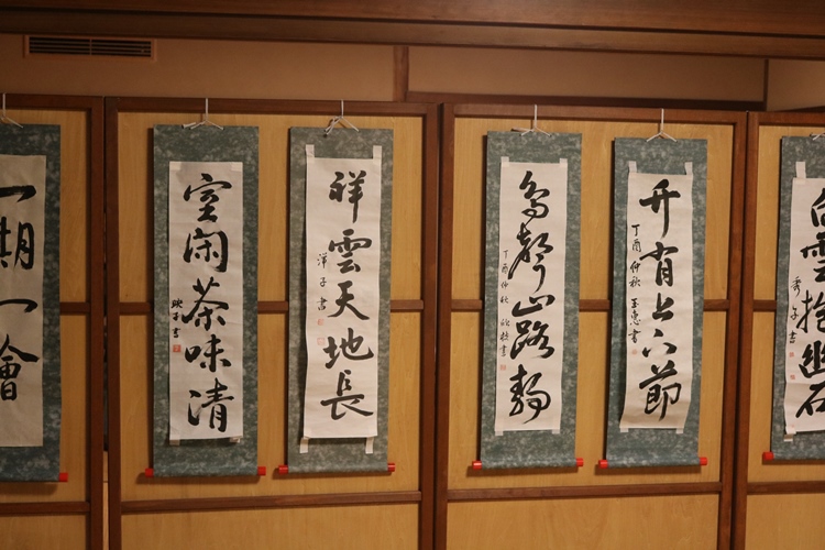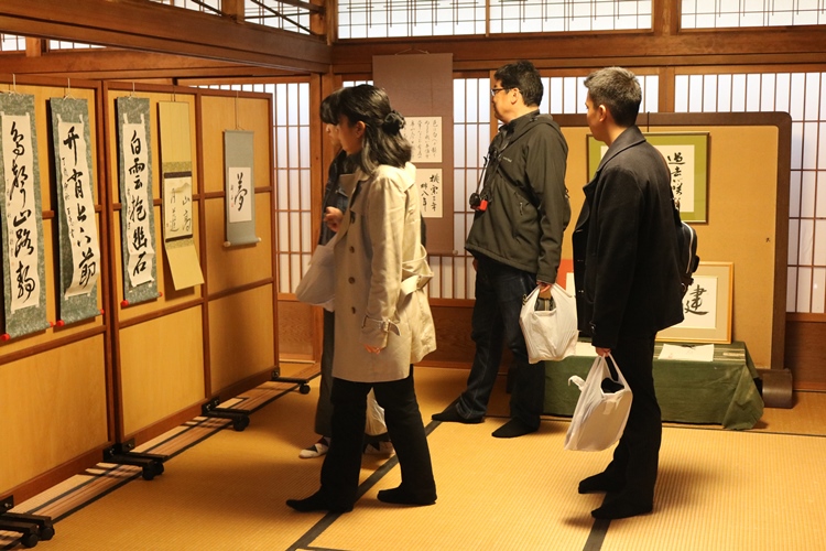 お寄せいただいた多くの品々が佐保会館2階大ホールいっぱいに並び、1階和室では、佐保塾書道講師の