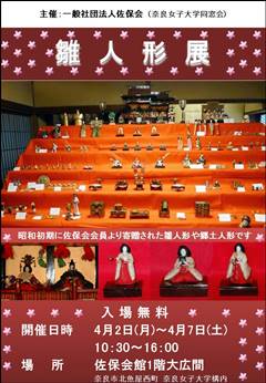 ー東京を中心に 関東の人形たちー 開催日時 : 平成30年4月2日(月)〜4月7日(土) 10:30〜16:00 開催場所 : 佐保会館一階大広間