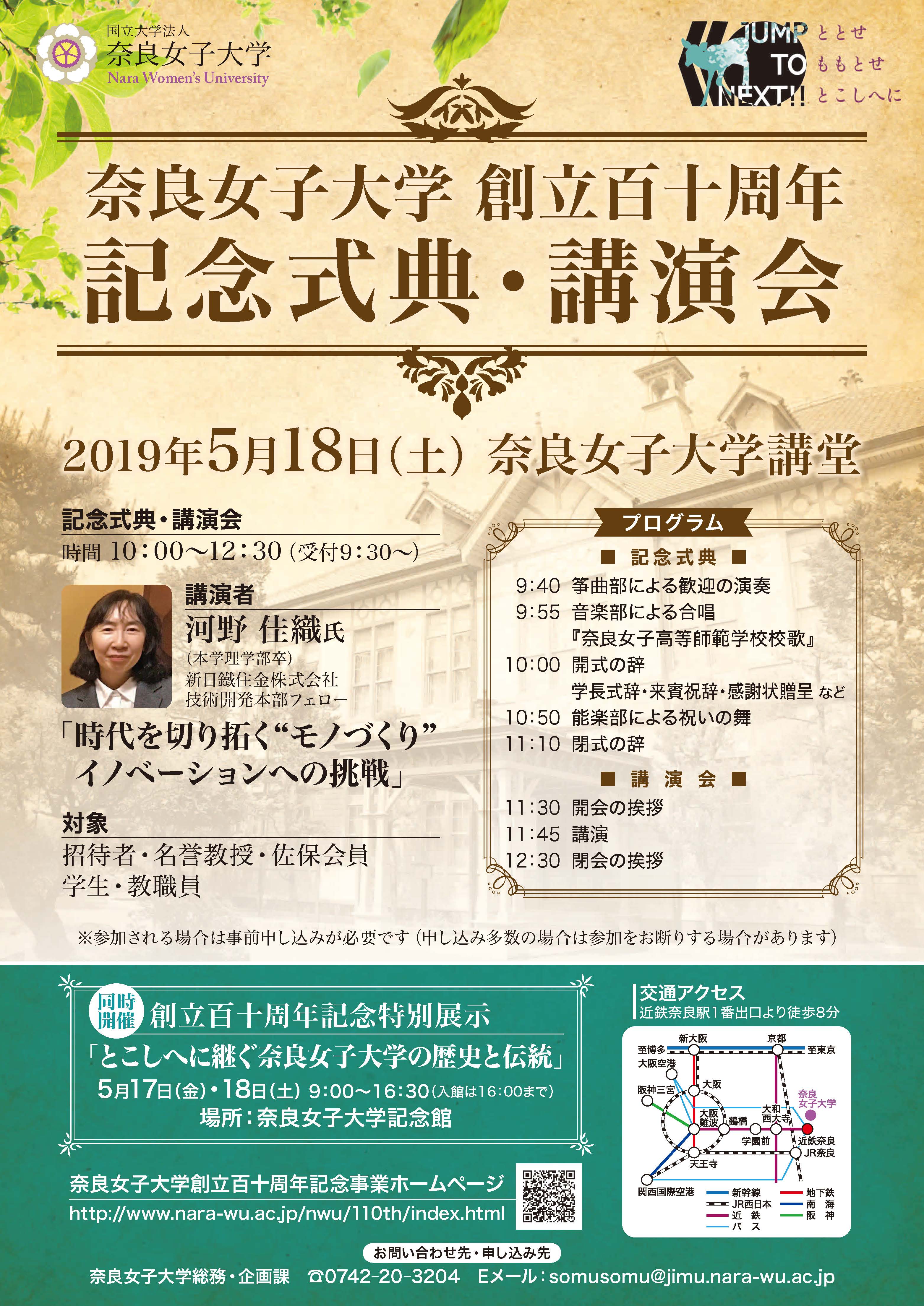 「奈良女子大学創立百十周年記念式典・講演会」と