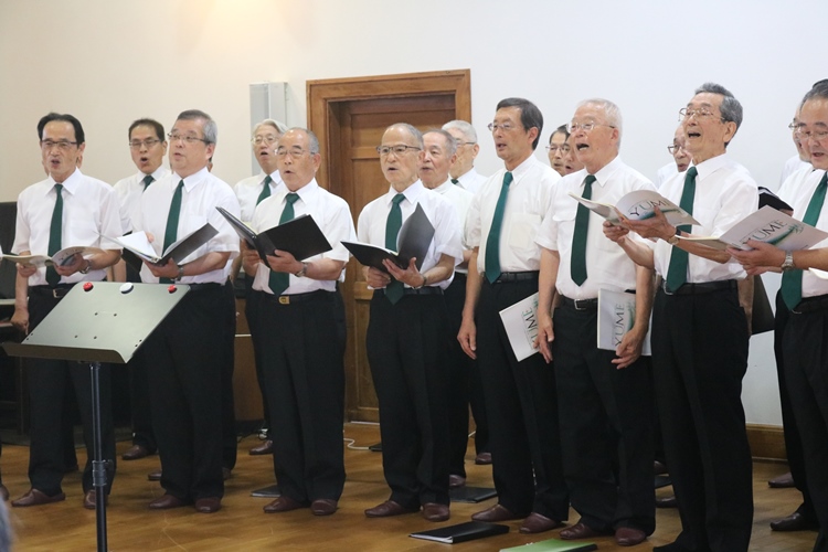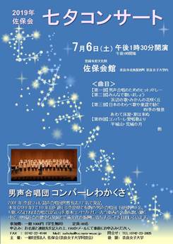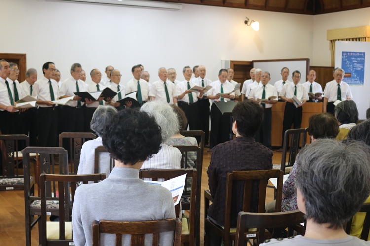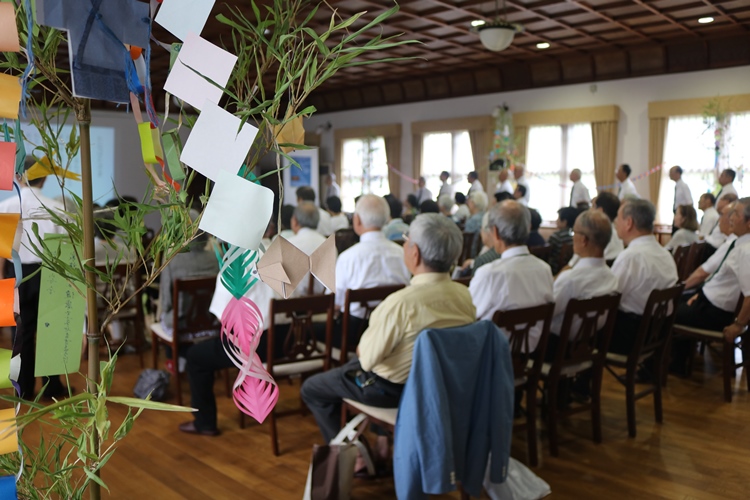 七夕を前日に控えた雨上がりの土曜の午後、男声合唱団コンパーレわかくさをお迎えして七夕コンサートを開催しました。