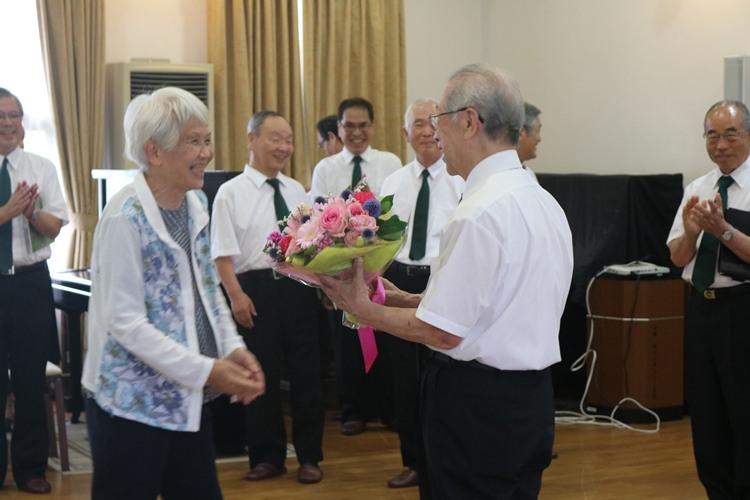松尾理事長の挨拶の後、可愛い笹飾りで飾られた会場は、美しいハーモニーに包まれました。「たなばたさま」「てるてる坊主」・・・「みかんの花咲く丘」といった七夕コンサートにピッタリの童謡から、誰もが耳にしたことのある懐かしいメロディ。それを表現する歌声からは、歌詞がつむぐ情景を、誰もがそれぞれに想い浮かべ、抒情あふれる世界へいざなってくれました。さらに編曲された懐かしい曲は歌声によって変身し、巧みな表現で面白さとワクワク感まで抱きました。
