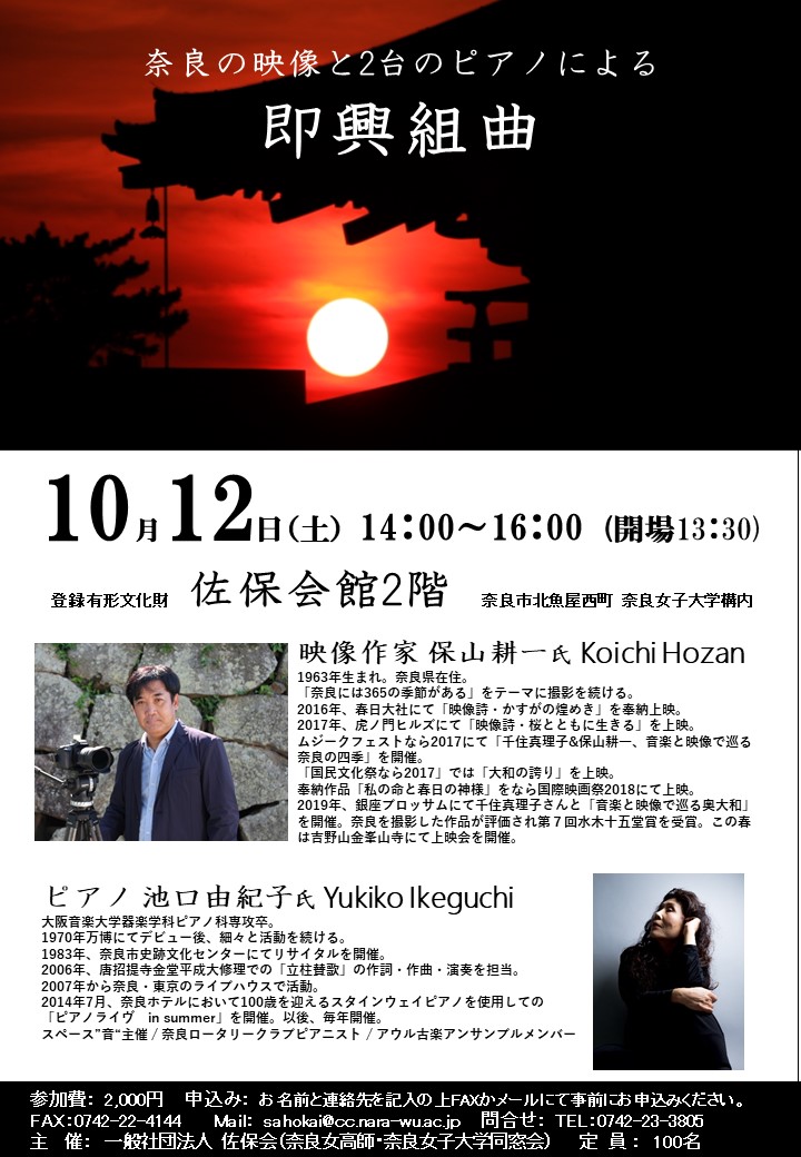 主 催 一般社団法人 佐保会(奈良女高師・奈良女子大学 同窓会)