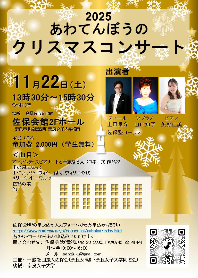主 催 一般社団法人佐保会(奈良女子高等師範学校・奈良女子大学同窓会)