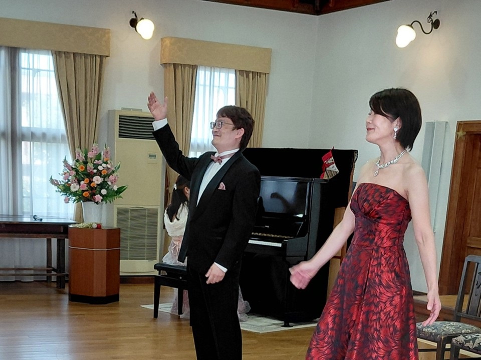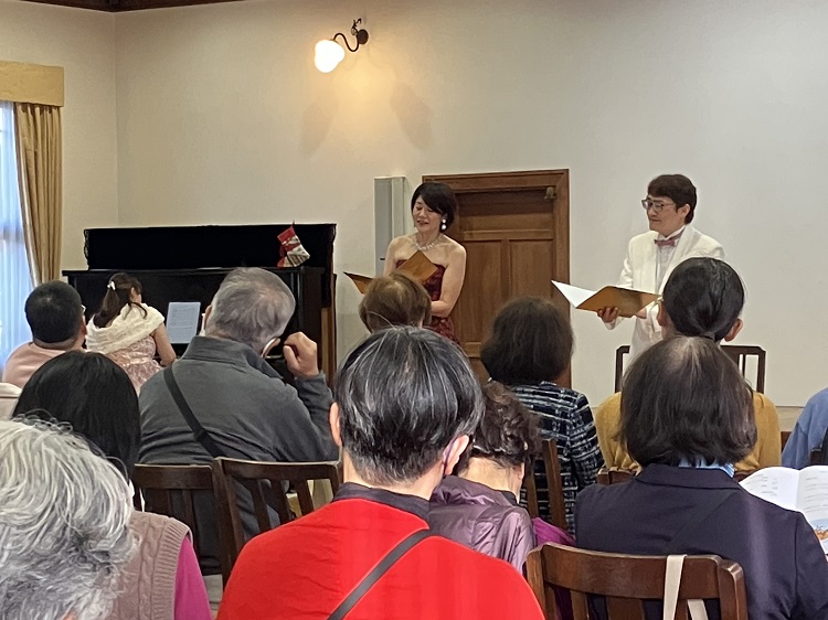 華やかなピアノソロから始まり、テノールソロ、アルトソロと続き、オペラの情景を思わせる重唱で第1部は締めくくられました。休憩の後、第2部は佐保塾コーラスの合唱から始まりました。コロナ禍で中断していた練習の再開が2023年の9月。そこからの練習の成果が発表されました。続いてシューマンのピアノ曲で優しい気分に。