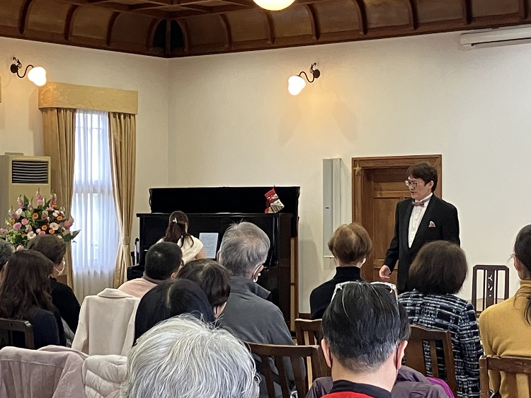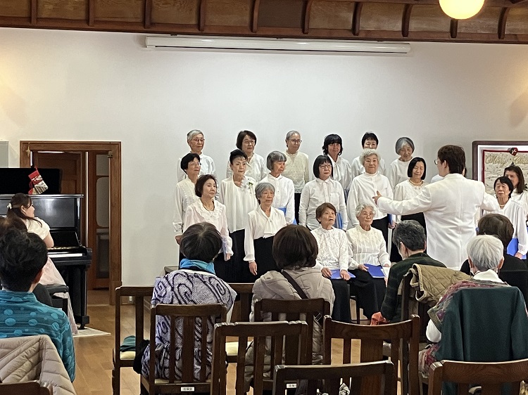 最後はテノール・ソプラノの聖歌の重唱から全員でクリスマスソングを合唱し、少し早いクリスマス気分に浸り、「今日の日はさようなら」で閉会しました。