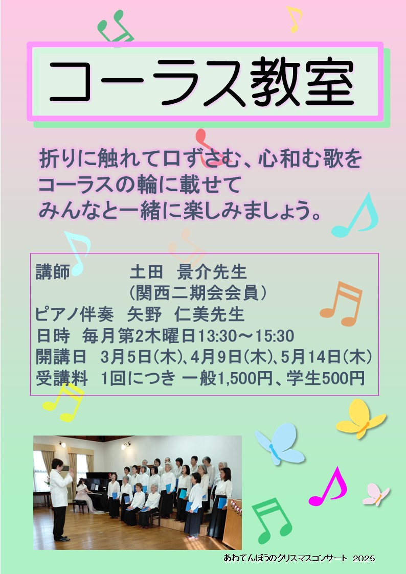※ 受講料:令和7年1月より、コーラス教室の受講料が改定されました。