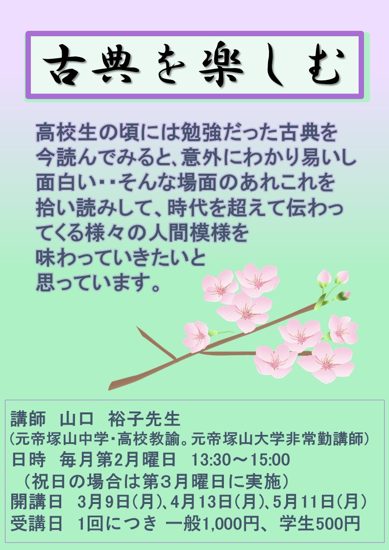 古典を楽しむ:1回につき 一般1,000円、学生500円
