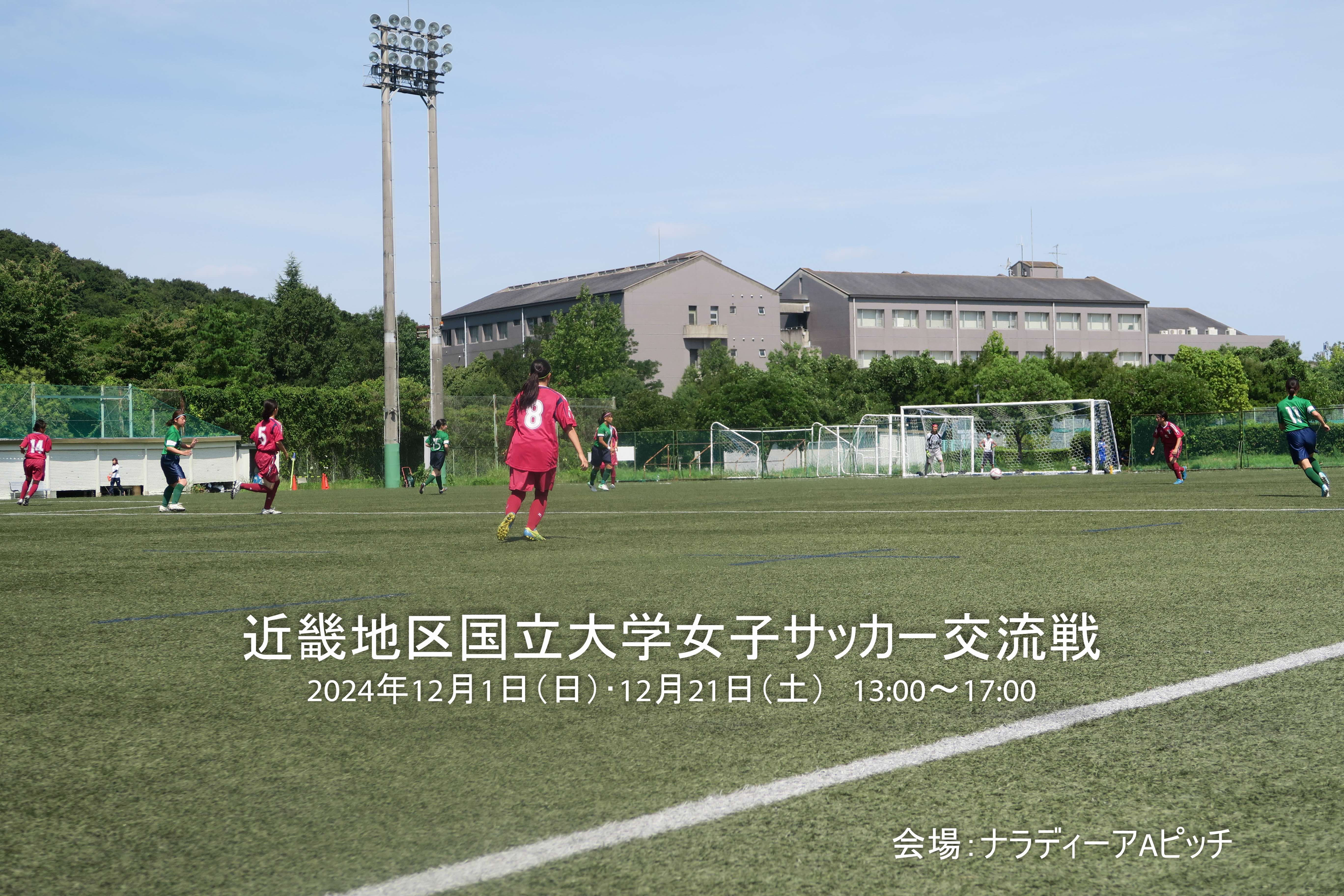 このたび、旧近国体のメンバーが集まり、比較的実力差の少ない大学同士で対戦ができる交流戦を創設しました。この大会の創設にあたっては、公益財団法人スポーツ安全協会の「スポーツ活動等普及奨励助成事業」の助成を受けるとともに、Jクラブの奈良クラブに後援をいただき、本拠地「ナラディーア」のピッチの提供を受けました。奈良クラブは奈良で初めて誕生したJクラブで、地域連携の活動とともに、女子サッカーの普及に取り組み始めています。また、奈良女子大学心身健康学科スポーツ健康科学コースには、地域連携を行う「健康なら21Stepアップ事業」として支援を受けたほか、心身健康学科の学生が運営を担当してくれます。