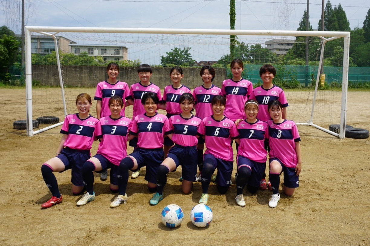 京都教育大学女子サッカー部です。現在私たちは、12名の選手と3名の学生スタッフで活動しております。今年のチームスローガンは「好きこそものの上手なれ」です。サッカーが好き、京教女サが好きという原動力で日々練習に励んでいます。大好きなものを大好きな人たちと楽しめるこの環境に感謝し、個性豊かなメンバーそれぞれが輝きながらチーム全員で成長していけるよう活動していきます。