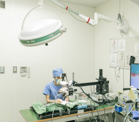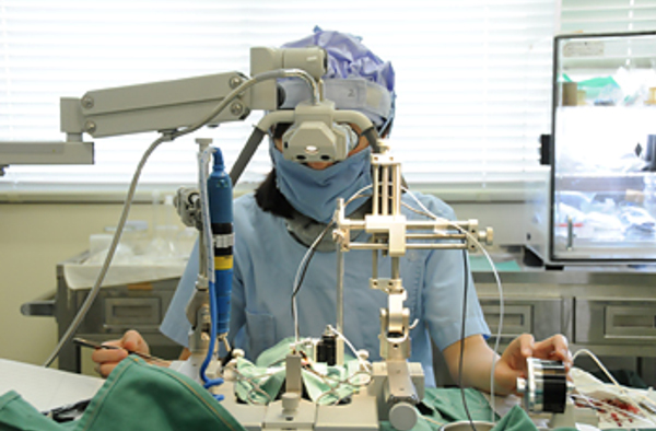 さらに、慢性電極留置のために、神経を鮮明に観察できる実体顕微鏡や、体温を維持しつつ電気ノイズを発生させない専用の手術環境を整えています。