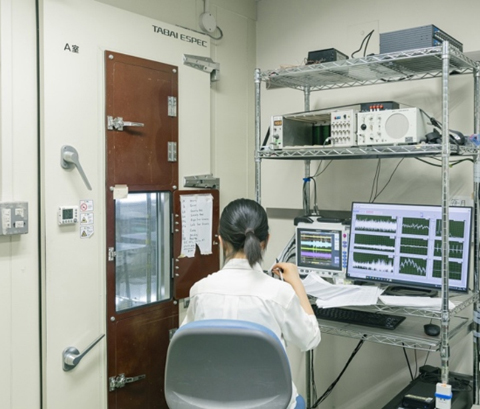 また、自律神経活動は温度、音、光といった環境変化に敏感に反応します。そこで、恒温制御、防音構造、照度一定といった条件を満たす動物実験専用の恒温チャンバーを設置しています。さらに、独立したアースラインを確保することで、ノイズ混入を抑え、長期計測の安定性を高めています。