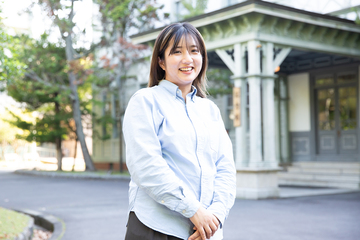 奈良女子大学 大学院人間文化総合科学研究科 博士前期課程住環境学専攻 撮影時1年次在籍/生活環境学部 住環境学科/2025年卒/建築関係のお仕事に従事していた親御さんに連れられ、小さい頃から有名建築物を見学する中で、建築・住宅分野に興味を持ったKさん。奈良女子大学には、自分の好きな分野が学べる、大学はもちろん、大学院にも進学できること、女子大ならではの学びやすい環境に魅力を感じ、入学を決定した。